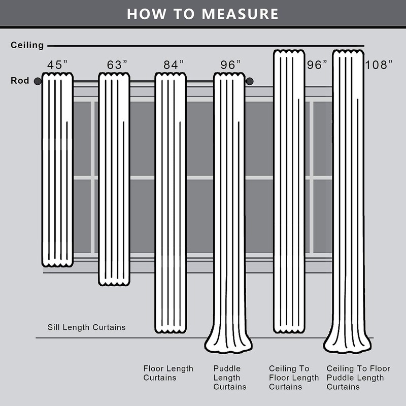 • READY MADE: Sold per pair (set), including 2 window panels - Each panel measures: 52 inch width by 96 inch length. Finished with 1.5 inches header and 3 inches rod pocket.