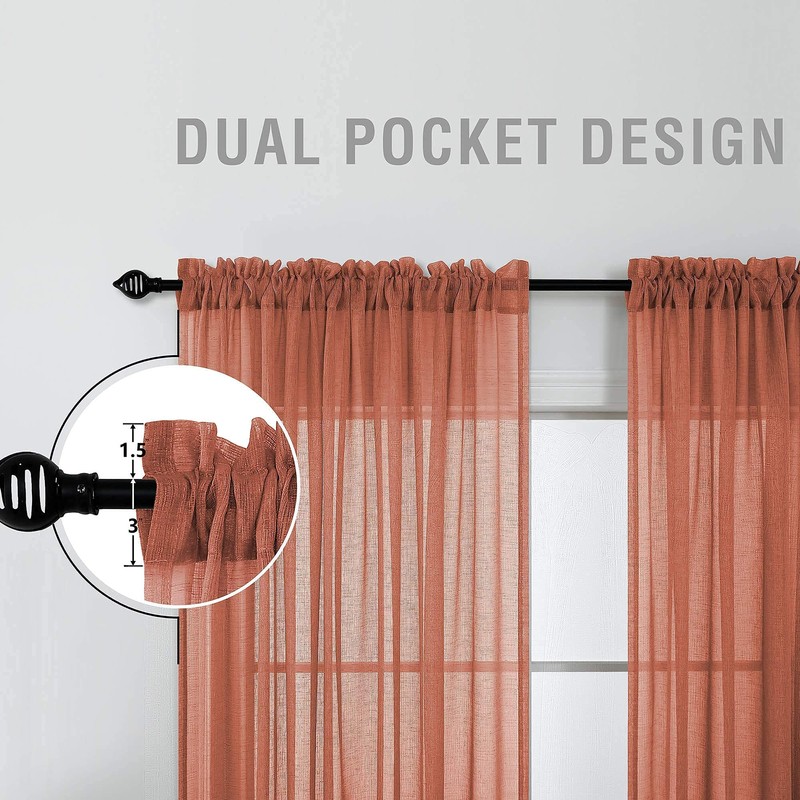 KOUFALL Burnt Orange Curtain Panels for Living Room Semi Sheer Boho Window Cu...