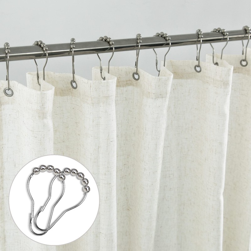 - Package & Care Instruction:Includes 1 panel shower curtain with reinforced meta grommet holes.12 silver ball beads rustproof hooks for easy sliding on shower curtain rod.Machine washable.No bleach.Tumble dry low.Iron with low temperature.