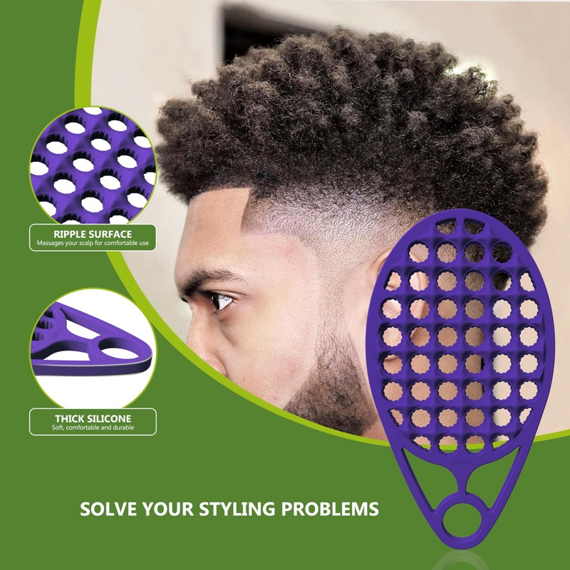 KOUPA Magic Silicone Curly Hair Brush, One Piece Twist Curl Comb for Afro Curls, Washable Hair Tool for Men Women, Purple, 2 Pieces