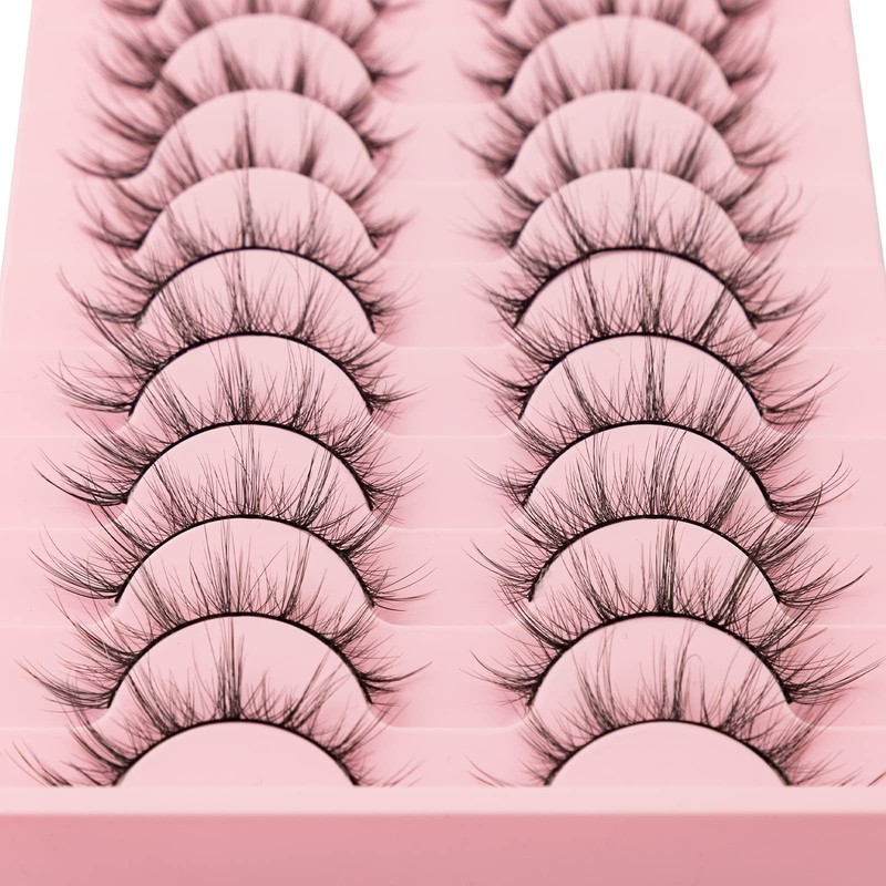KOUSEI Artificial Eyelashes, Manga False Eyelashes, Natural Lashes, Pure Handmade Lashes, Fluffy Fake Eyelashes, Artificial Mink Eyelashes, Reusable, 10 Pairs Eyelash Set, Black