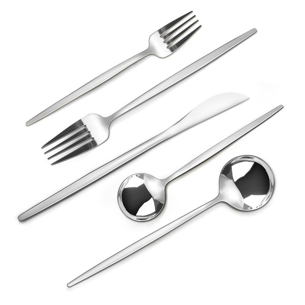 KOUSKOU Mirror Silverware Set, 40-Piece Flatware Cutlery Set Service for 8, Mirror Polished Tableware Set, Utensils for Kitchens, Home and Restaurant, Dishwasher Safe