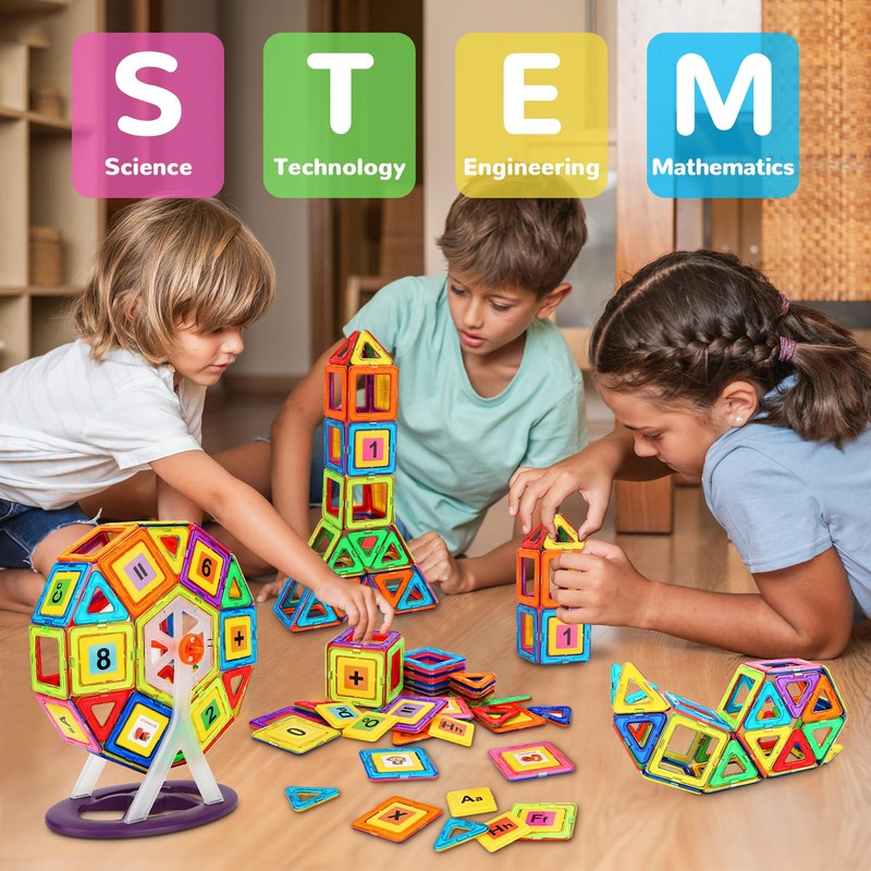 - Educational STEM Toys for Kids - Ideal for boys and girls aged 3-4, including toys for autistic children. These magnetic building blocks help enhance color recognition, shape understanding, and critical thinking skills, all while providing hours of fun.