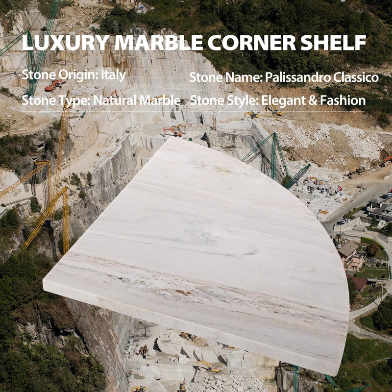 - 【INNOVATIVE DETAIL DESIGN】Crafted from natural marble, this corner shower caddy is extremely durable and waterproof. Its polished surface and side arcs not only provide a smooth feel but also make it incredibly easy to clean, rendering it particularly well-suited for wet environments. Included metal support bars to provide greater stability and load bearing.