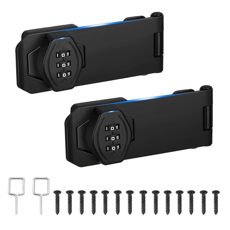 KOVOSCH 2 Pack Cabinet Combination Hasp Locks Balck, Mechanical Password Latch Locks, Door Security Slide Latch Locks for Small Doors, Cabinets, Barn Door, Bathroom, Outdoor, Garden