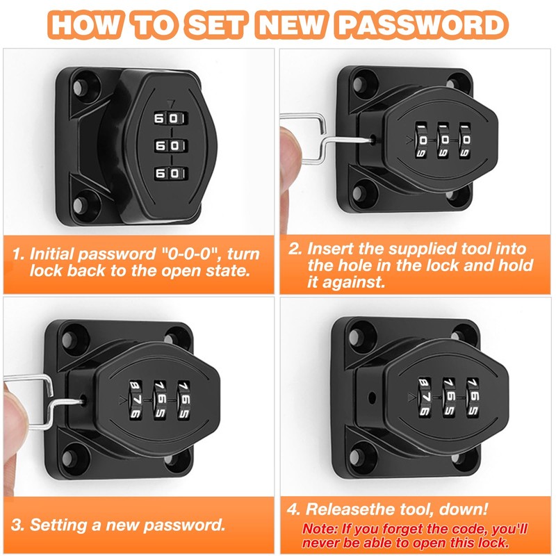 KOVOSCH cabinet door locks are designed with a 3-digit combination lock so you don't have to carry a key, safe and secure.