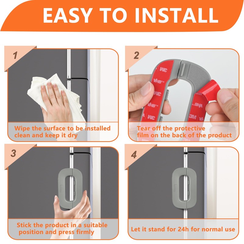 - High-Quality Material: KOVOSCH self-adhesive fridge lock is made of high quality ABS plastic, which is more resilient and makes it last longer. And the product uses strong 3M adhesive to stick, even if an adult pulls it hard, it is difficult to pull it off.