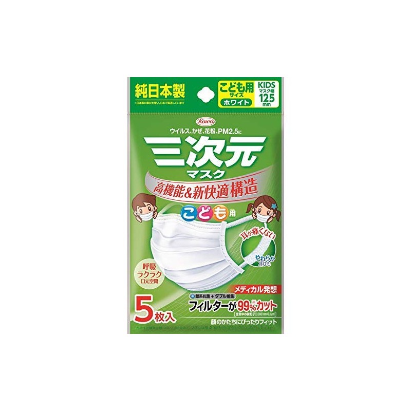 Kowa Three-Dimensional Mask, Children's Size, White, 5 Pieces x 5 Pieces, Set of 5
