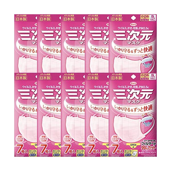 Kowa Three-Dimensional Mask, Small, Baby Pink, Set of 7 x 10