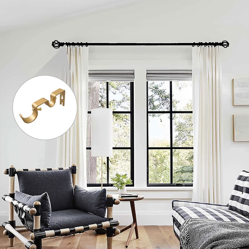 - 😀 Extensive Application - These double curtain rod holders are appropriate to add stability and beauty for any indoor space: Office, Bedroom, Shower Room, Living Room, Kitchen, etc. Recommended for use with new installations or replacing old brackets.