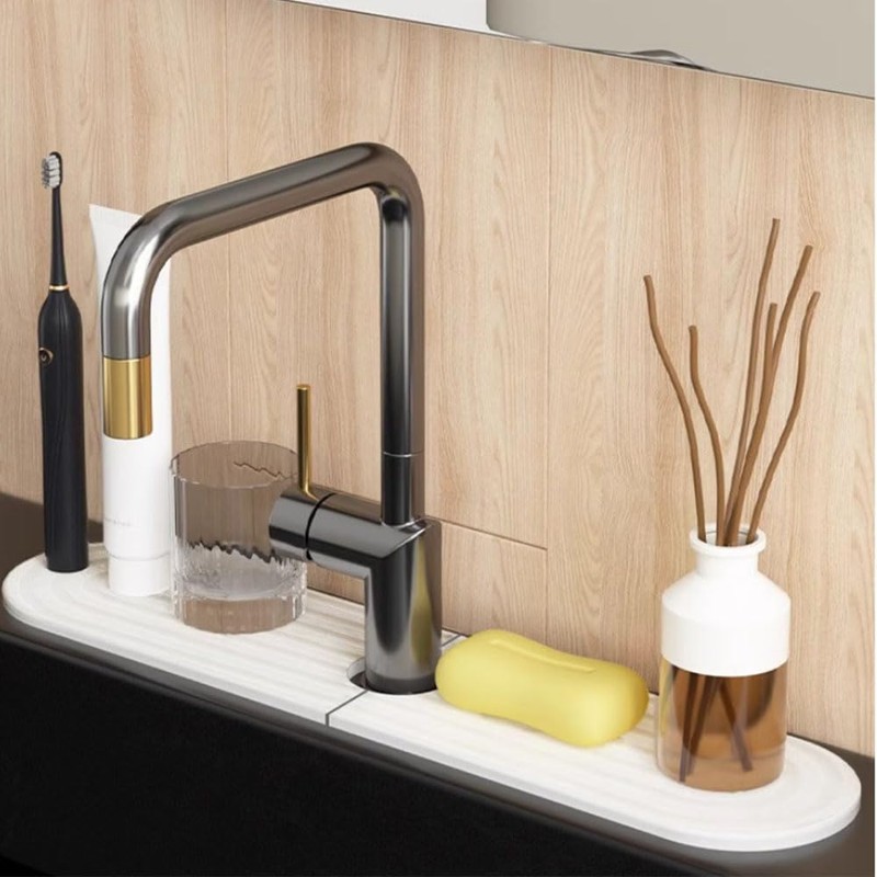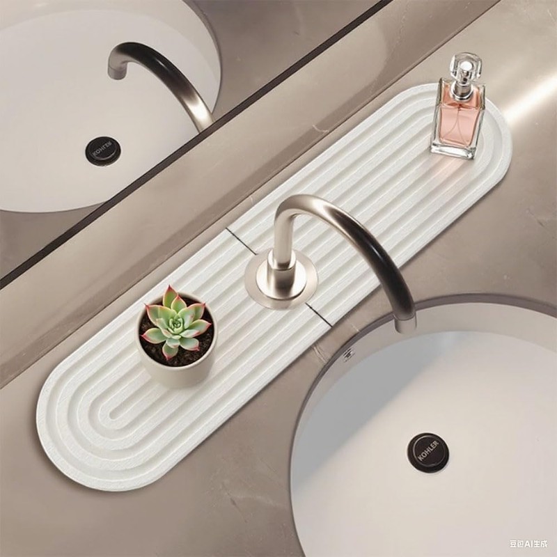 - Amazing Faucet Mat: Sink drying stone wraps perfectly around the faucet and catches all the drips and splashes that usually make a mess