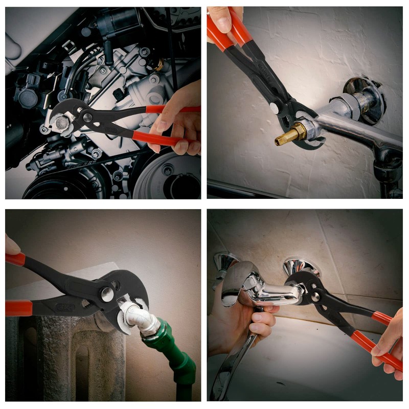 - 3-piece set of quick-release groove joint pliers for plumbers, tightening and loosening nuts, bolts, pipes and fittings. Ideal for industry or home applications.