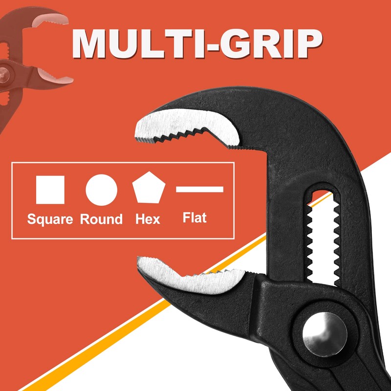 - V-Jaw design provides multiple points of contact, they can bite into pipes, rods, shafts and fasteners of flat, round, square and hex shapes. For durability and strong grip.