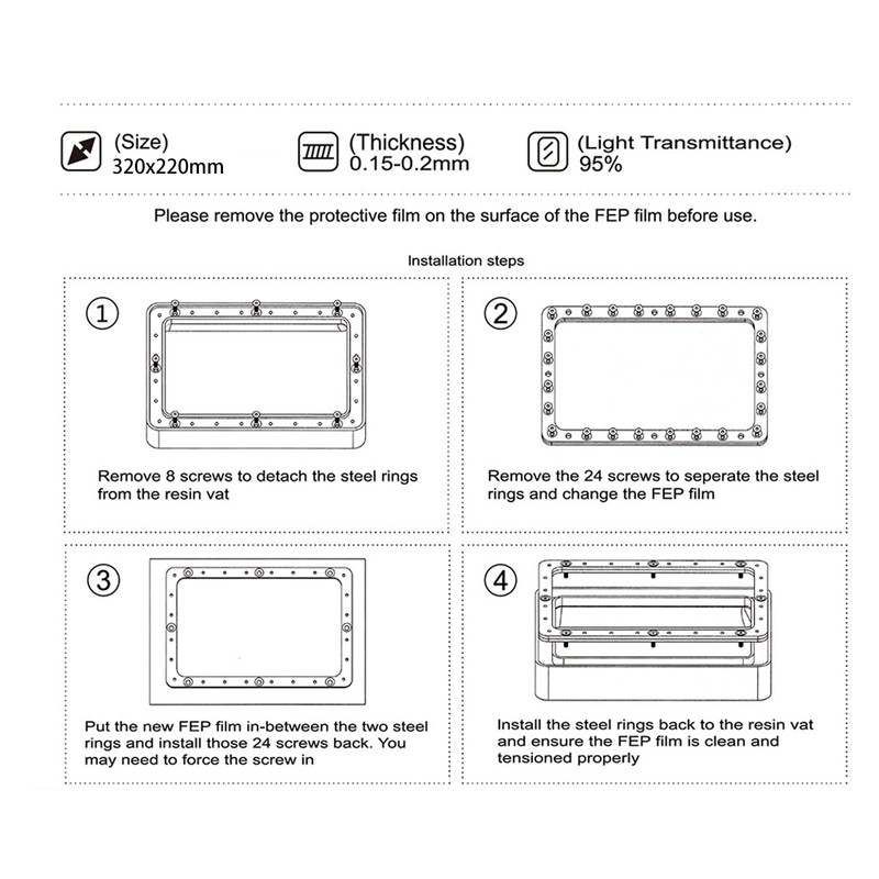 - Contains an easy-to-follow package tutorial that guides you on how to replace the FEP film.