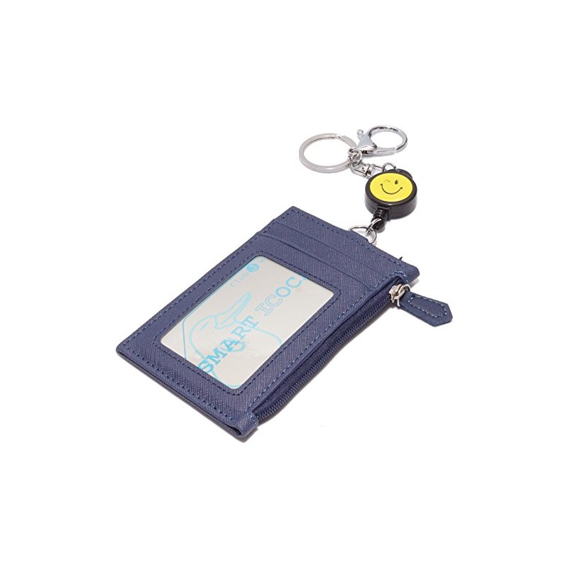KOYOKOMA Pass Case, IC Card Case, Commuter Pass Case, Nico-chan Mark, Extendable, Key Reel, Key Chain, Includes Key Chain, For Work or School Commutes, Coin Pocket, navy