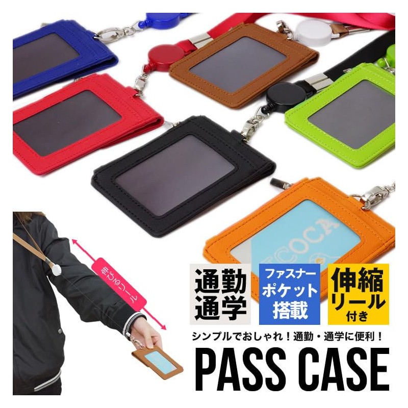 KOYOKOMA Pass Case, ID Card Holder, Extendable Reel, Neck Strap, Card Holder, Commuter Holder, IC Card Holder, Employee ID Card, Coin Purse, Commuting to Work or School (Green)