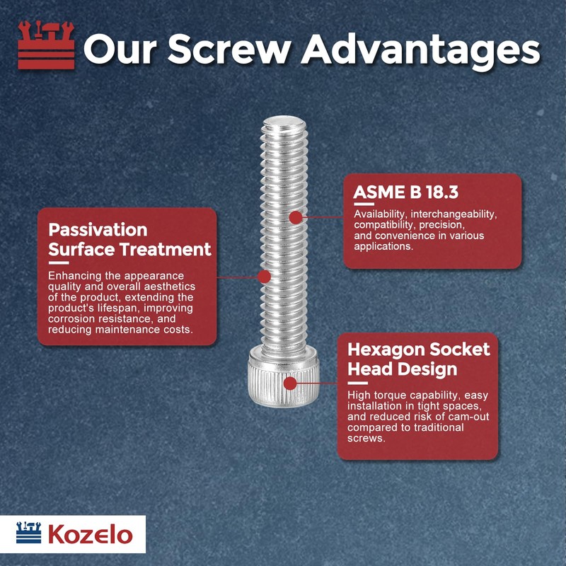 Kozelo 10pcs Socket Head Cap Screws - [5/16"-24 x 1-1/4"] 304 Stainless Steel...