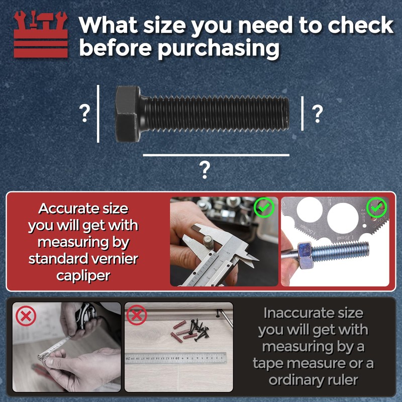 -Before purchase, confirm correct size needed. Use caliper,gauge checker for measurement; avoid ruler or tape measure.