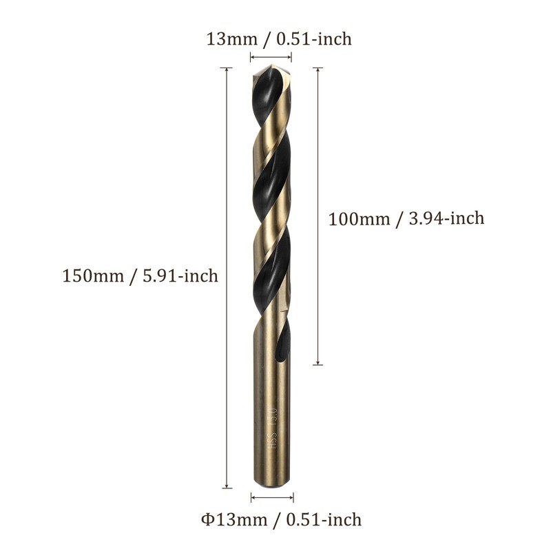 - 1- PACKAGE CONTENTS - 2PCS 13mm/0.51" metric twist drill bit with 100mm/3.94" blade length, and total length is 150mm / 5.91".