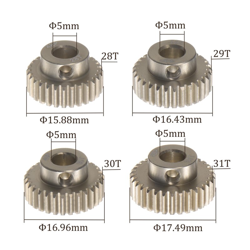 Package Contents: 4 Pcs 48DP Aluminum Teeth Hardened Pinion Motorcycle Gears with Hex Key