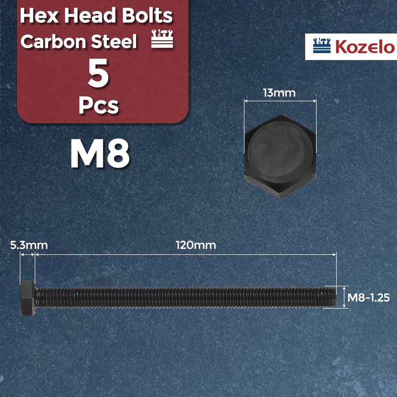 Kozelo 5 Pcs Hex Head Screws Bolts - [M8-1.25x120] Carbon Steel Grade 10.9 Fu...