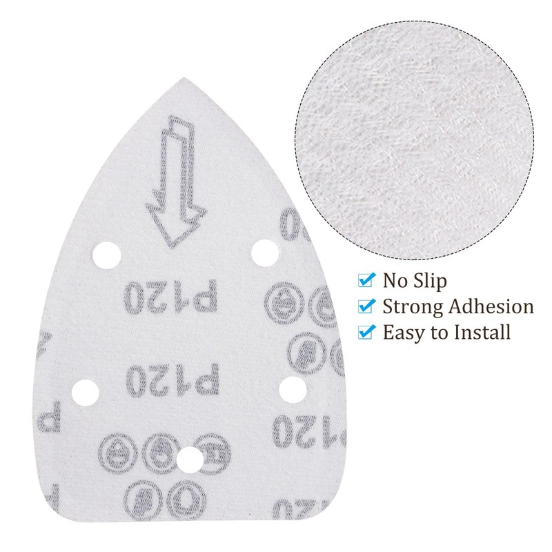 • 1- PACKAGE CONTENTS - 50pcs detail sander pads with 120 Grit, sized at 90mm x 140mm (3.5" x 5.5"), perfect for your 140mm sander. Its small size and pointed tip allow for precise sanding in tight corners and hard-to-reach areas.