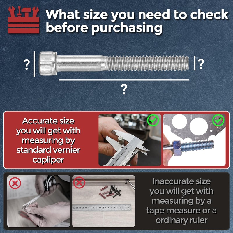 • 5- TAKE NOTICE OF - Before purchase, confirm correct size needed. Use caliper,gauge checker for measurement; avoid ruler or tape measure.