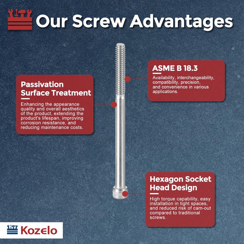 Kozelo 5pcs Socket Head Cap Screws - [1/4"-20 x 3-1/2"] UNC 304 Stainless Ste...