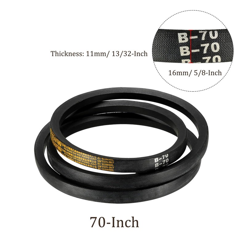- 1- Package Contents - 1pc 70 Inch Pitch Girth 16mm/ 5/8 Inch Width 11mm/ 13/32 Inch Thick Drive V-Belt