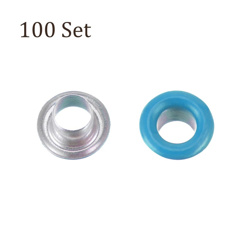 Kozelo Grommets Kit 100set-[4mm 1/6" Hole] Metal Eyelets Grommet Tool for Shoes Clothes DIY Project Use, Tiny Grommet, Sky Blue