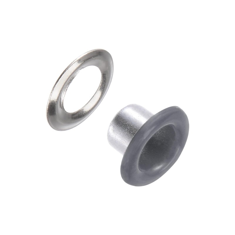 - Crafted from iron, these grommets are robust and long-lasting. The surface finish features baking paint technology, making them resistant to rust and corrosion, and maintaining their shape even after prolonged use.