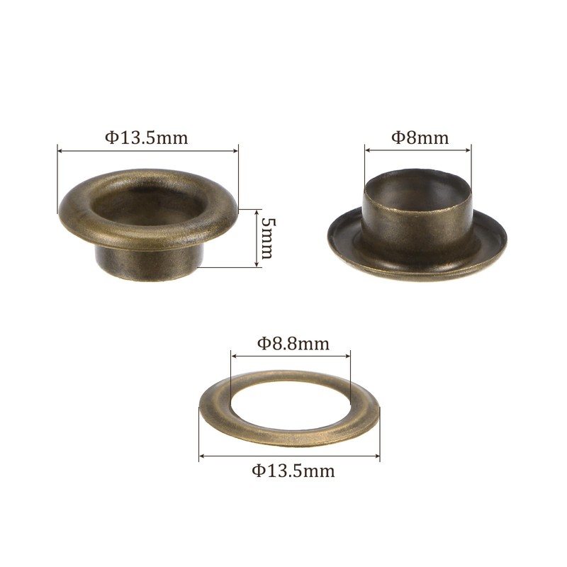 Eyelet Total Size: 8mm x 13.5mm / 1/3" x 0.53"(ID*OD)