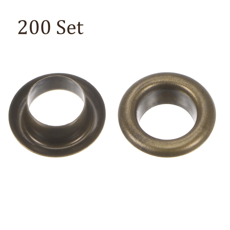 Kozelo Grommets Kit 200set-[8mm 1/3" Hole] Metal Eyelets Grommet Tool for Scrapbooking Clothes DIY Project Use, Tiny Grommet, Bronze