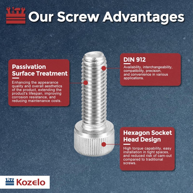 - 4- Applications - in machines for fixing and connecting components to ensure stable operation. These screws are essential for assembling machines, equipment and tools to maintain their structural integrity. In addition, they are used to adjust mechanical parts and perform maintenance tasks to maintain the precision and functionality of the equipment.