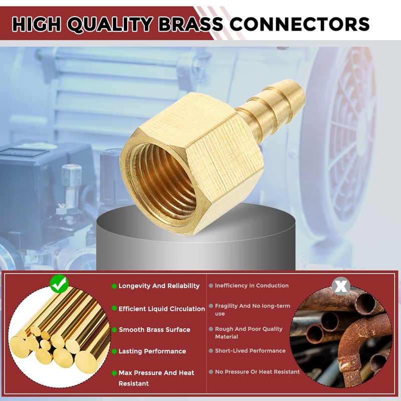 - 2. Durability and Versatility: Crafted from brass, these hose barb fittings exceptional durability and corrosion resistance, good for enduring tough conditions indoors or supporting garden irrigation and outdoor swimming pool setups.