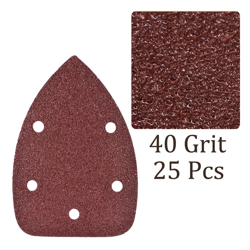 Kozelo Pack of 25 Mouse Sander Detail Sandpaper - [40 Grit, 3.5 x 5.5 Inches] Triangular Velcro Sanding Pads for Wooden Furniture Polishing | 5 Holes, Aluminium Oxide
