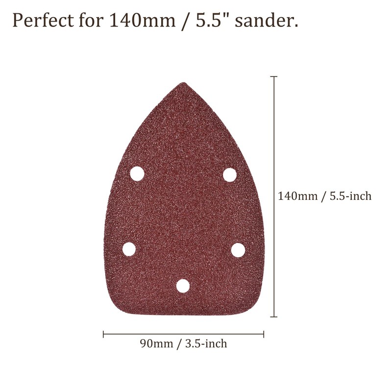 - Box contents: 25 pieces detail sanding pads with 40 grit, size 90 mm x 140 mm (3.5 x 5.5 inches), perfect for your 140 mm sander. The small size and pointed tip allows precise grinding in tight corners and hard-to-reach areas.