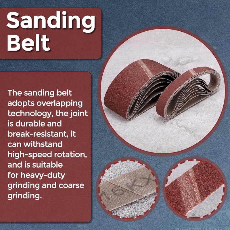 - 2- Firm Interface: The 4 x 36 sanding belt adopts overlap technology, which is not easy to break, and eliminates the bulge of the splicing as much as possible, making the grinding more uniform and smooth, and can withstand high-speed rotation.