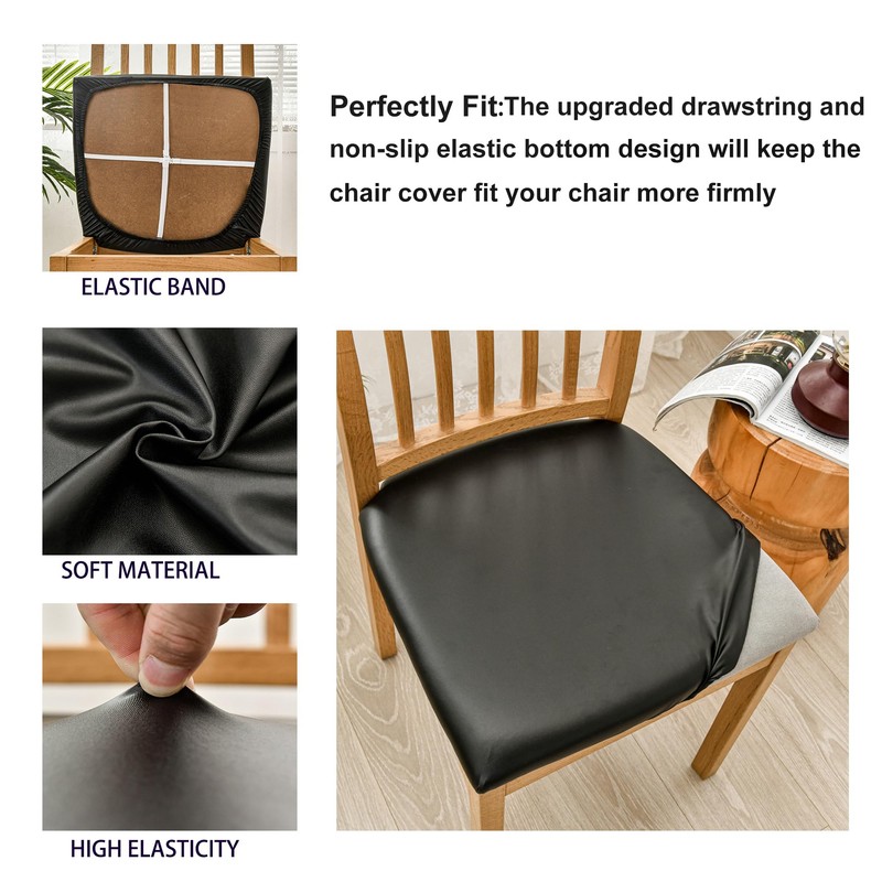 - EASY TO INSTALL AND USE: PU Leather fabric Chair cover can fit the chair seat well. with a high elastic tie comebined with a buckle, can provide perfect fit and non-slip grip.