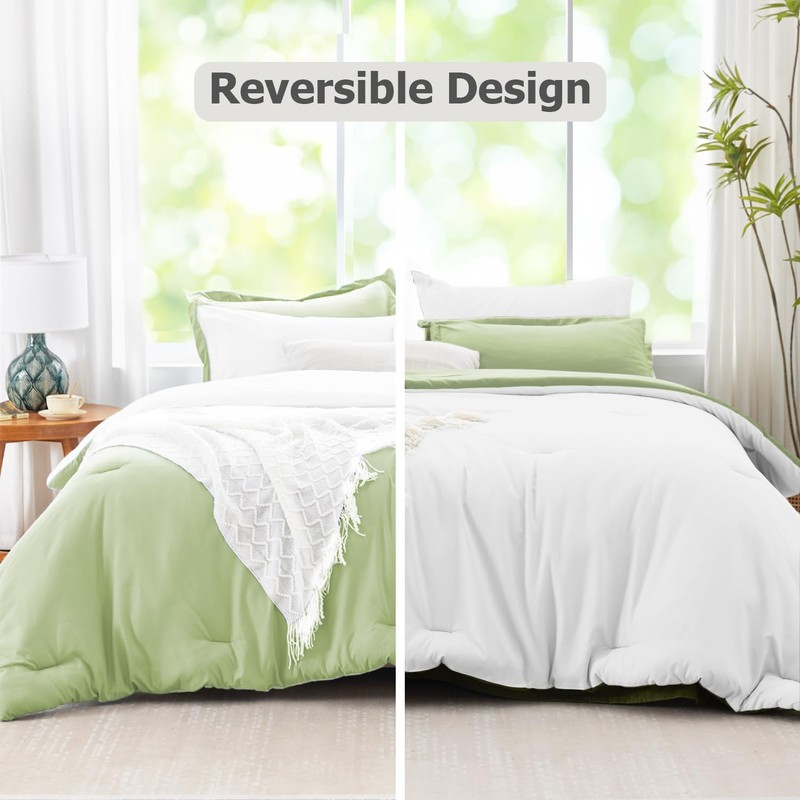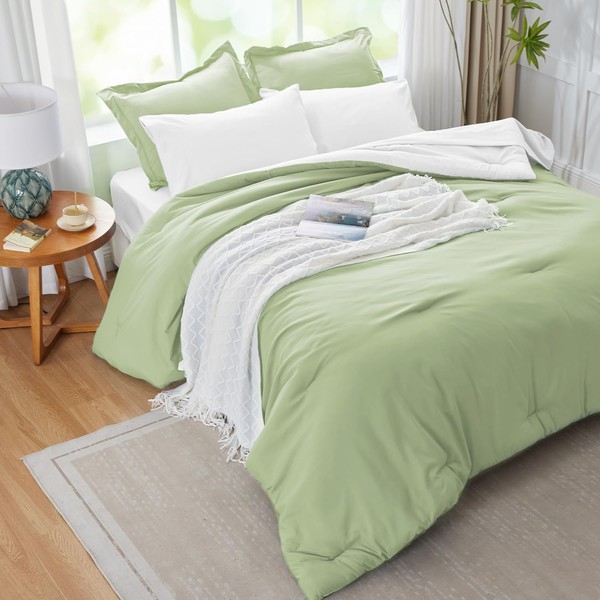 Kozyhvn Full Size Comforter Sets Light Green Reversible Bedding Set, 7 Pieces Soft Bed in a Bag Full with Comforter, Sheets, Pillowcases & Shams, All Season Boho Bedding Sets Full