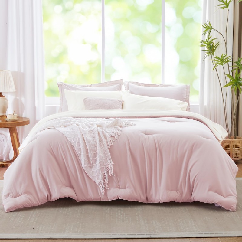 Kozyhvn Pink King Size Comforter Set, Reversible Bedding Set, 7-Piece Soft Be...