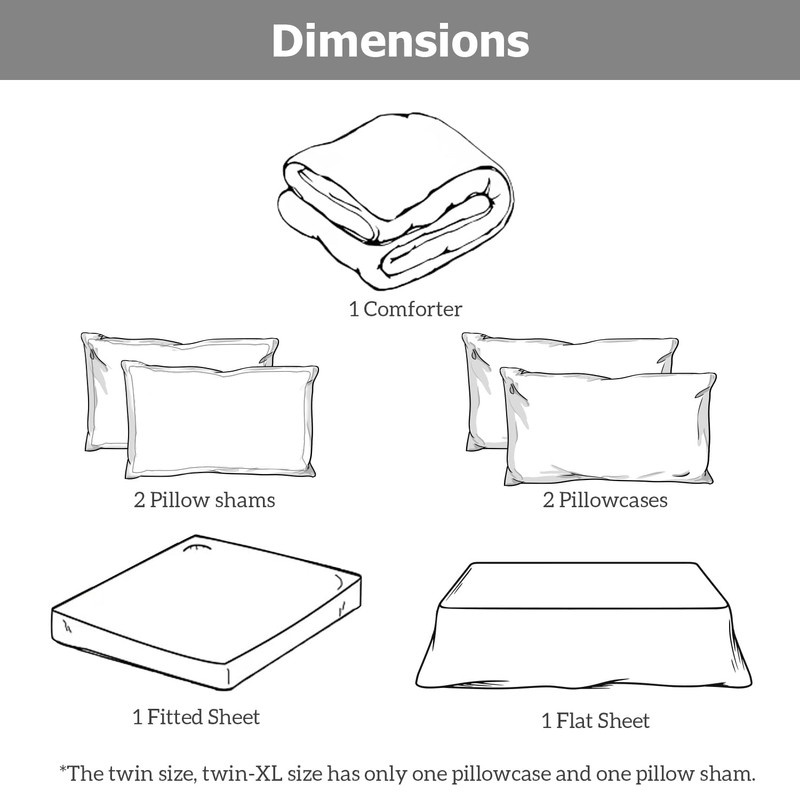 • Inclusive Bedding Set: This King bed in a bag includes 1 Reversible King Comforter (102" x 90"), 2 Pillowcases (20" x 40"), 2 Pillow Shams (20" x 36" + 2"), 1 Fitted Sheet (78" x 80" + 14"), 1 Flat Sheet (108" x 102"). Committed to your satisfaction, Kozyhvn offers premium products and attentive service, Reach out with any questions.