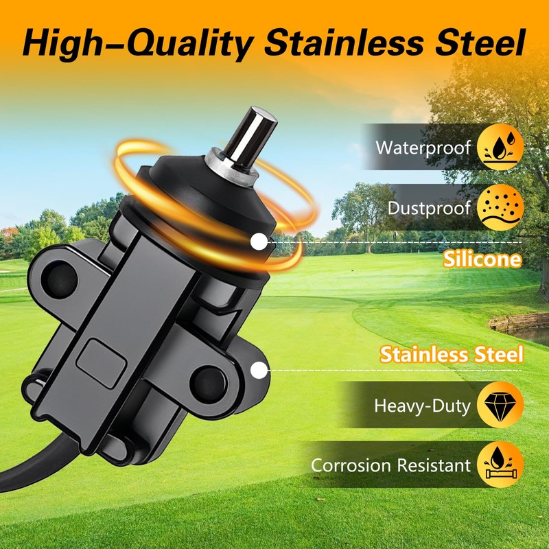• 【Durable Material】:The golf cart emergency stop switch is made from high-quality stainless steel, which is exceptionally strong and durable. The connection part is sealed with silicone, ensuring it is waterproof and dustproof. This guarantees that the stop switch performs well and has a long service life.