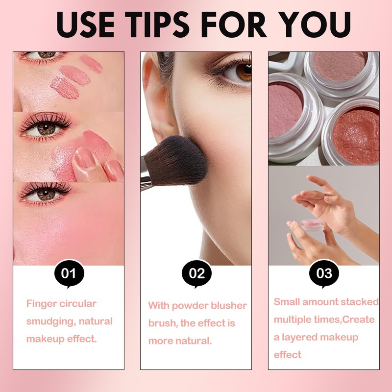 - Easy to Use:This blush cream is easy to mix,and both fingers and brushes can easily show color,maintaining a natural makeup look.