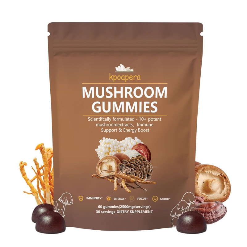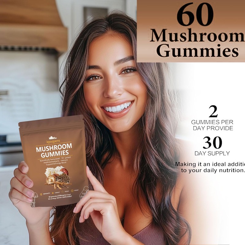 KPOAPERA Mushroom Gummies, 10+ Potent mushroomextracts, Immune Support & Energy Boost, for Men & Women, Vegan - 60 Gummies