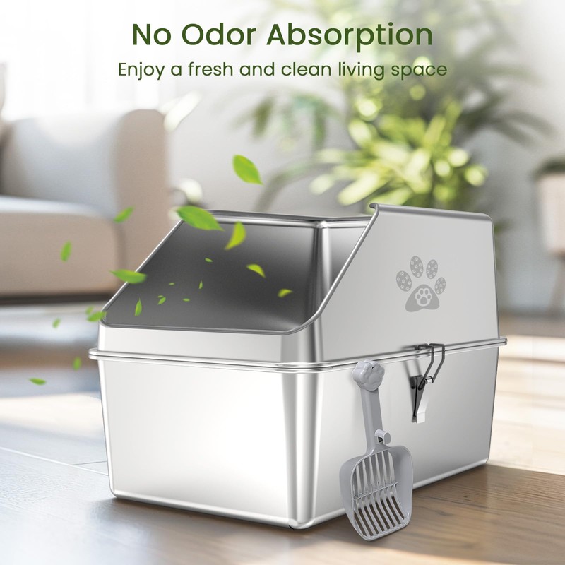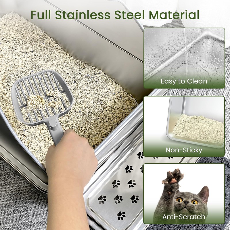 - Odor-Free & Easy to Clean: This metal litter box is crafted from high-quality stainless steel with a smooth, non-stick surface that prevents litter and waste from sticking, doesn't absorb odor. Sturdy metal material resists dents, scratches, and abrasions, ensuring long life and easy cleaning. Unlike plastic trays, a stainless litter pan is rust-proof and non-stick, providing a fresh, hygienic environment for cats.