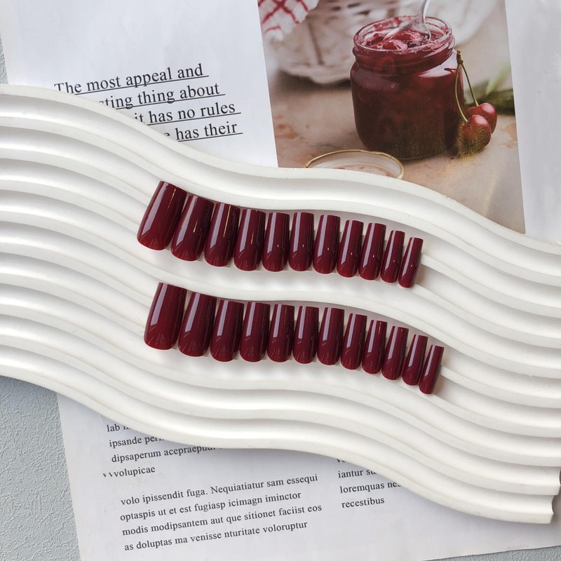 - Natural Fit, Lightweight Feel:Crafted from soft, flexible material, our maroon red medium coffin nails stick on are designed to mimic the natural curve of your fingertips. The thin cuticle line ensures a seamless transition between your nails and the berry maroon glue on nails medium length, comfortable for all-day wear