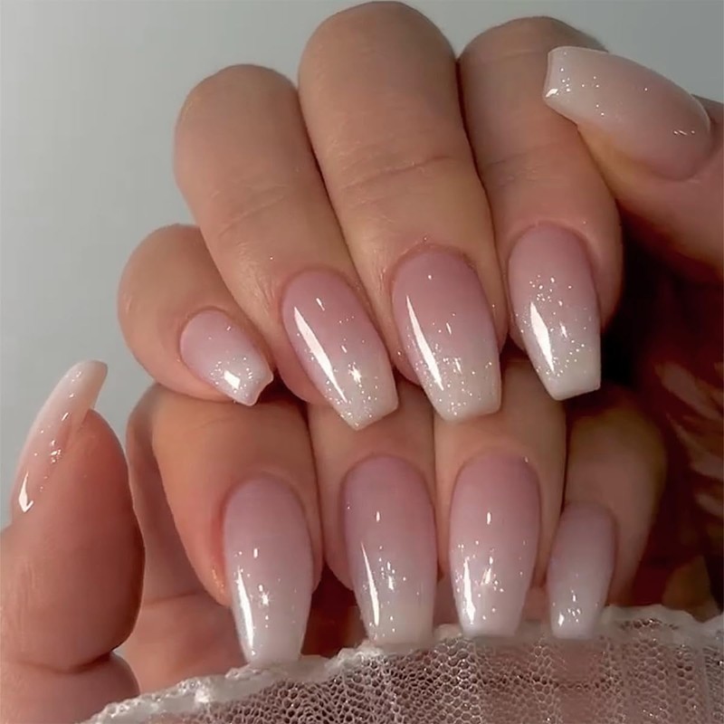 - Complete French nail set includes: 24 bling ombre pink nails to stick on coffin, 1 sticker nails, 1 mini file, 1 wooden stick. The finger short adhesive nails for women is ready to use