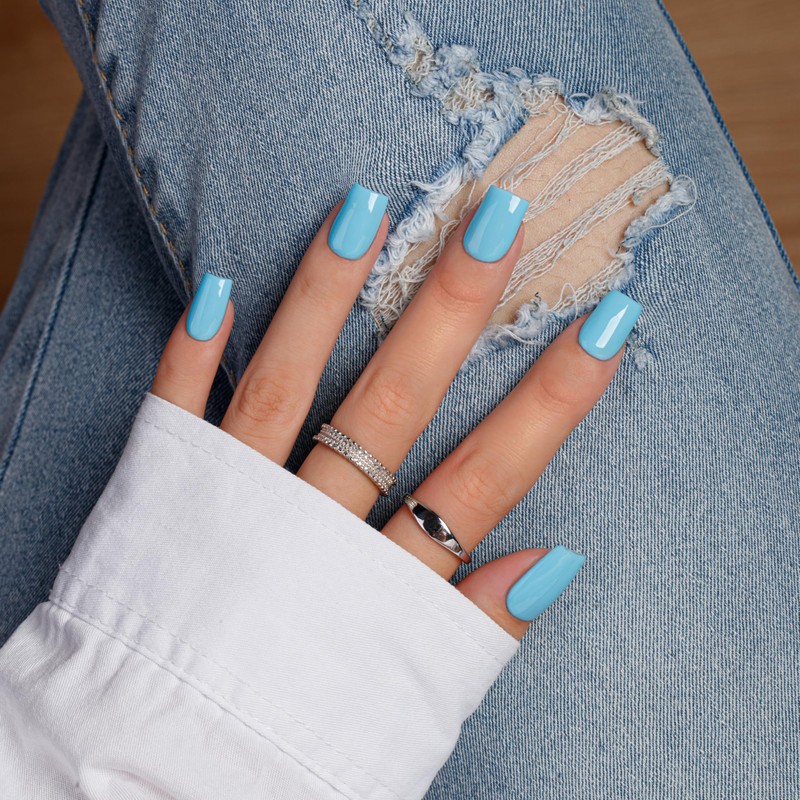 • Medium Coffin Nails Fake in Minutes: Skip the salon without compromising on quality. These easy-to-apply glue on sky blue nails short medium square give you a salon-fresh finish in minutes, saving you time while delivering a clean, polished appearance that lasts