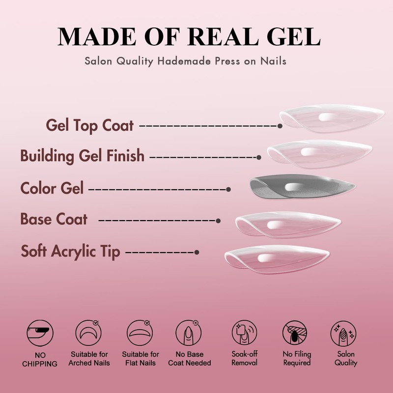 - Durable, Chip-Free Finish: The premium gel coating resists cracking and fading, keeping your light gray stick on nails for women vibrant and smooth throughout wear. With proper care, each soft gel press on nails medium square stays firmly in place for up to two weeks. Strong and reliable without damaging your natural nails